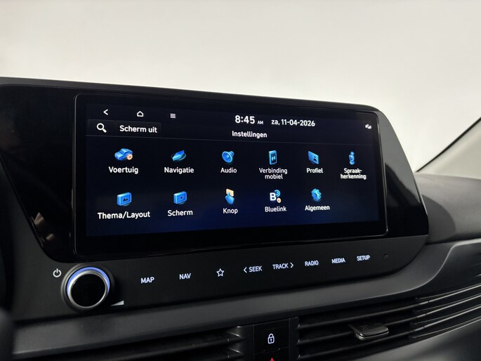 Met het digitale dashboard kan je de cockpit-interface naar jouw voorkeur instellen. Nekkramp en verdraaide schouders zijn verleden tijd. Door de achteruitrijcamera is iedere meter achter de auto glashelder in beeld. Adaptive cruise control houdt de ingestelde snelheid vast en houdt afstand tot het voertuig voor je. Gemak dient de mens. Dankzij de spraaksturing bedien jij de belangrijkste functie met jouw stem. In één oogopslag weet je de complete systeemstatus van deze auto. Dankzij Connected Services. Met premium audiosysteem, full map navigatiesysteem, automatische airconditioning, DAB ontvangst, regensensor en keyless entry is deze Hyundai helemaal compleet.