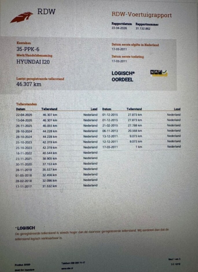 Deze Hyundai i20 afkomstig van de 2de eigenaar, en komt uit 2011, werd geleverd van 01-09-2010 tot 30-06-2012 en kostte toen 13.470,-. Deze originele Nederlandse personenauto staat sinds 2011 op kenteken, is voorzien van een benzine-motor, heeft een maximum vermogen van 57 kW (77 PK) en een cilinderinhoud van 1248 cc.