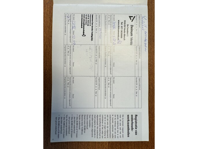 Onderhoudsboekjes: Aanwezig