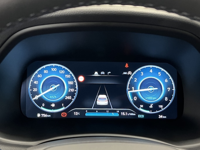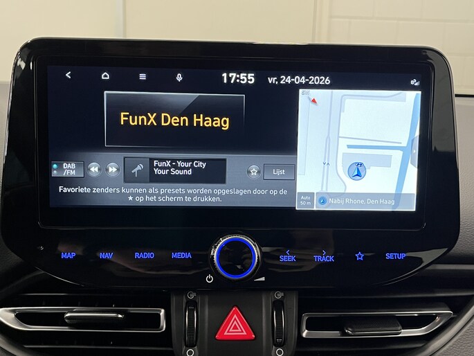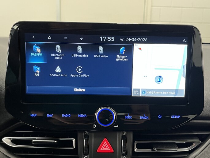 Het digitale dashboard rekent mee, denkt mee en rijdt mee. Alle info overzichtelijk in beeld, overal. Hoeveel ruimte heeft u nog bij het inparkeren? De achteruitrijcamera brengt helder in beeld wat zich achter de auto bevindt en geeft een geluidssignaal. Dankzij de spraaksturing bedien jij verschillende functies zonder jouw handen van het stuur te halen. Veilig en comfortabel rijden wordt nog eens versterkt door Connected Services, zodat je diverse vitale functies van de auto altijd kunt checken in de app. De snelste of zuinigste weg? Het full map navigatiesysteem aan boord wijst de juiste weg! De uitrusting van deze Hyundai is met automatische airconditioning, draadloos opladen, DAB ontvangst, regensensor, cruise control en keyless entry behoorlijk compleet.