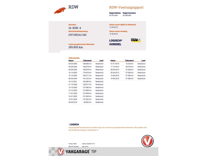 Kilometerstand gecontroleerd