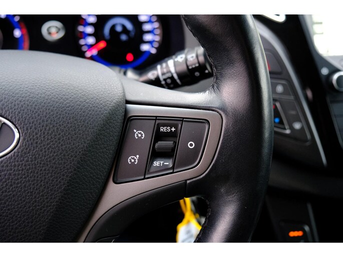 Boem is ho? Dat is verleden tijd. De achteruitrijcamera laat precies zien hoeveel ruimte u achter nog heeft! In deze auto beschikt u natuurlijk over een navigatiesysteem. Het audio-installatiesysteem met DAB-radio biedt glasheldere geluidskwaliteit. U bedient dit veilig via het stuurwiel. Bij de luxe van deze auto hoort ook electronic climate control. Het drukke verkeer eist onderweg al uw aandacht op. Daarom is het goed dat deze Hyundai is voorzien van diverse systemen die u assisteren tijdens de rit. Een automatisch inschakelbare verlichting neemt het waar als het donker wordt of gaat schemeren, en schakelt dan automatisch de verlichting in. Op dezelfde manier "ziet" de regensensor de eerste spatjes regen en schakelt dan de ruitenwissers in, en als het harder gaat regenen zet hij de ruitenwissers ook in een snellere stand. Een heerlijke egale snelheid? Even de cruise control inschakelen! Ook automatisch dimmende binnenspiegel, centrale deurvergrendeling met afstandsbediening en boordcomputer horen tot de voorzieningen op deze auto.