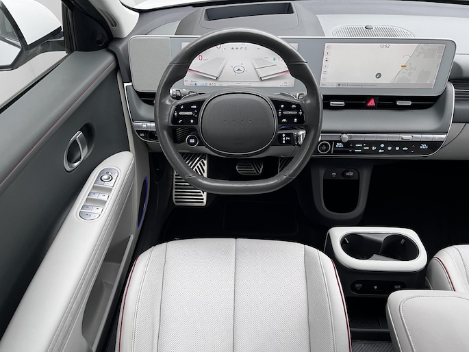 Lounge 73kWh / Fabrieksgarantie tot 10-2026 / Accu SoH 100 % / Dealer onderhouden / WLTP 451 km / 1.600 kg / Warmtepomp / Navigatie/ HUD / Camera 360° / Stuur-, stoel- & achterbankverwarming / BOSE /Leder / Apple Carplay Android / 20" LM wielen /