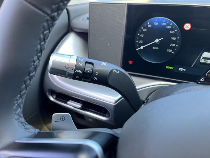Zoals u mag verwachten van deze Hyundai IONIQ 9 is hij uitgerust met een reeks aan actieve veiligheidssystemen. Onderweg zorgt verkeersborddetectie ervoor dat u geen waarschuwingsbord mist. Het Lane-keeping systeem zorgt voor een automatisch constante positie binnen de rijstrook. Afdwalen is uitgesloten. Als een fietser of andere weggebruiker zich net buiten uw zichtveld naast de auto bevindt, slaat de actieve dodehoekdetectie meteen alarm. De auto is ook uitgerust met hill hold functie, autonoom remsysteem en bandenspanningcontrolesysteem.