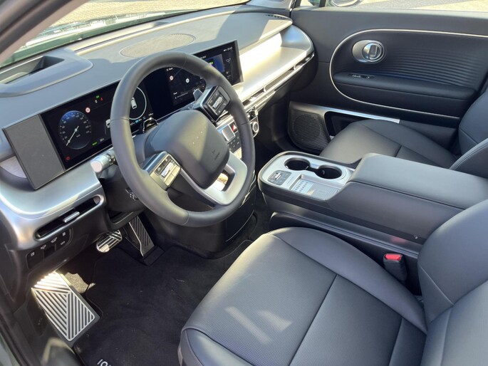 Elektrisch rijden is ontspannen rijden. Achter het stuur van deze Hyundai IONIQ 9 kunt u zich in alle rust concentreren op de weg. De fluisterstille elektromotor zorgt voor pittige rijprestaties zonder uitstoot. Maar wel met fiscaal voordeel! Het interieur is luxe uitgevoerd met leren bekleding. Hoe koud het buiten ook is, het verwarmbare stuurwiel en de verwarmbare voorstoelen brengen uw handen, vingers en lichaam snel weer op temperatuur. De achterklep opent automatisch met een druk op de knop. Handig als u met volle handen staat. Bij de zeer complete uitrusting van deze auto behoren ook schuif- en kanteldak, 20 inch lichtmetalen velgen, adaptief dempingsysteem, LED-dagrijverlichting, geluidsisolerende ramen en trailer assistent.