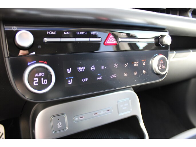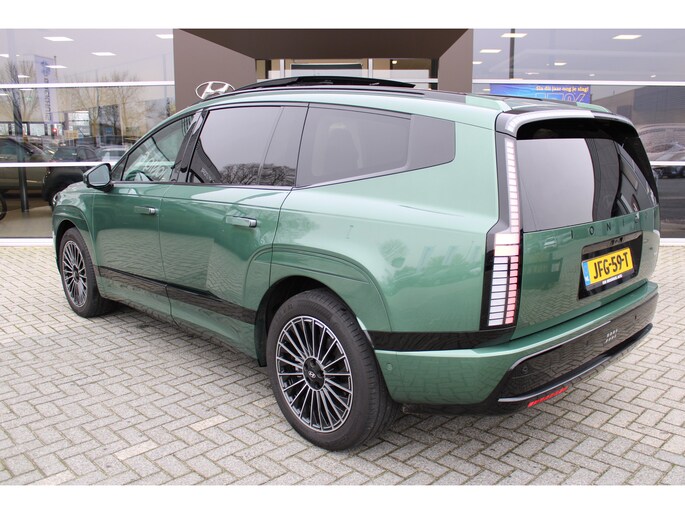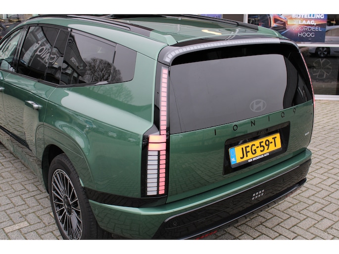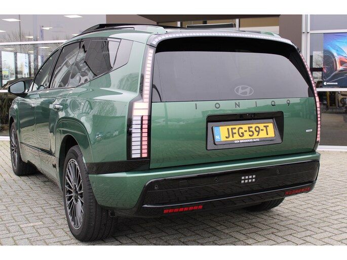 De vormgeving van deze Hyundai IONIQ 9 is geoptimaliseerd voor een optimale actieradius. Zo haalt u maximaal rijplezier uit elke kilometer. Stil en stevig optrekken zonder extra uitstoot? De elektromotor zorgt ervoor! Deze auto uit 2025 heeft nauwelijks gereden, met een tellerstand van slechts 9000 kilometer. De krachtige motor geeft deze Hyundai uitstekende prestaties. Topklasse: daar hoort leren bekleding absoluut bij. Hoe koud het buiten ook is, het verwarmbare stuurwiel en de verwarmbare voorstoelen brengen uw handen, vingers en lichaam snel weer op temperatuur. De achterklep opent automatisch met een druk op de knop. Handig als u met volle handen staat. Bij de rijke uitrusting horen ook 21 inch lichtmetalen velgen, adaptief dempingsysteem, LED-dagrijverlichting, geluidsisolerende ramen, trailer assistent en in delen neerklapbare achterbank. Slim, efficiënt, veilig en goed geïnformeerd rijden? Het digitale dashboard vertelt u alles wat u wilt weten. De 360 graden camera wordt mogelijk gemaakt door vier camera's die tezamen werken om zo een uitgebreid zicht te bieden, wat van grote waarde is bij het navigeren door smalle straatjes en parkeerplekken. Adaptive cruise control is een comfortabele en veilige optie. Het systeem reguleert de snelheid en houdt automatisch afstand tot uw voorligger. De conditie van deze auto is 24/7 inzichtelijk dankzij Connected Services. Voor een krachtige en natuurlijke geluidsweergave zorgt het high performance audiosysteem. Wat u ook in deze auto kunt vinden zijn dashboard met spraakbediening, full map navigatiesysteem, kruisend verkeer detectie, automatische airconditioning, draadloos opladen en DAB ontvangst. In deze auto zijn verschillende technologieën aanwezig die voor u het verkeer en de omgeving in de gaten houden en die desnoods ook kunnen remmen of bijsturen. In het instrumentarium ziet u tijdens de rit ook de belangrijkste verkeersborden aangegeven, die de auto automatisch voor u leest. Het Lane-keeping systeem garandeert dat u zich niet onverhoeds buiten de lijnen van de rijstrook begeeft. De actieve dodehoekdetectie draagt bij aan uw eigen veiligheid en die van uw medeweggebruikers. Met voorzieningen als hill hold functie, autonoom remsysteem en bandenspanningcontrolesysteem, bent u altijd veilig onderweg. Altijd al elektrisch willen rijden? Het moment voor een proefrit is nu!