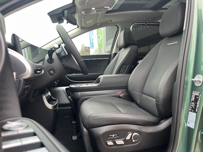 Duurzaam en dynamisch, de Hyundai IONIQ 9 verenigt deze twee uitersten in zich. Dit is een auto uit 2025, er staat 10000 kilometer op de teller. De batterijtechniek heeft de afgelopen jaren enorme vooruitgang geboekt, zodat u met deze auto op een volle acculading echt ver kunt komen. En als u de auto 's avonds aan de lader koppelt, is hij de volgende dag weer helemaal vol. Een krachtige motor geeft deze auto zijn sportieve prestaties. Deze Hyundai is voorzien van een mooie en comfortabele lederen bekleding. Rijcomfort wordt naar een hoger niveau getild in deze auto, met inbegrip van stoelverwarming, een verwarmbare achterbank en een verwarmbaar stuur. Een handige voorziening op deze auto is de elektrische achterklep die u op afstand kunt openen. Ook is de auto voorzien van: schuif- en kanteldak, 20 inch lichtmetalen velgen, adaptief dempingsysteem, LED-dagrijverlichting, geluidsisolerende ramen en trailer assistent. Over het digitale dashboard is goed nagedacht. Alle belangrijke functies binnen en buiten in één oogopslag. Het gebruik van de 360 graden camera op deze auto zorgt voor een groter gezichtsveld en helpt de dode hoeken te elimineren. Met adaptive cruise control houdt deze auto automatisch afstand tot uw voorligger. Het infotainmentsysteem bedient u met uw vingers of met uw stem, met dank aan de geïntegreerde stembediening. Zoals u van zo'n jonge auto mag verwachten, zijn hier ook de geavanceerde remote services aanwezig. Simpelweg met een app op uw smartphone controleert u op afstand de status van de auto en bedient u diverse functies. Extra opties op deze auto zijn: premium audiosysteem, full map navigatiesysteem, kruisend verkeer detectie, automatische airconditioning, draadloos opladen en DAB ontvangst. Geavanceerde technische systemen houden tijdens elke rit het verkeer in de gaten en reageren op potentieel gevaarlijke situaties. In het instrumentarium ziet u tijdens de rit ook de belangrijkste verkeersborden aangegeven, die de auto automatisch voor u leest. Keep your lane? Het Lane-keeping systeem zorgt er automatisch voor. Als een fiets of ander voertuig zich in de dode hoek bevindt, waarschuwt het actieve dodehoekdetectie. Dit helpt ernstige ongelukken voorkomen. In deze Hyundai vinden we verder een hill hold functie, autonoom remsysteem en bandenspanningcontrolesysteem. Maak de transitie naar elektrisch rijden en neem contact op voor een afspraak of proefrit!