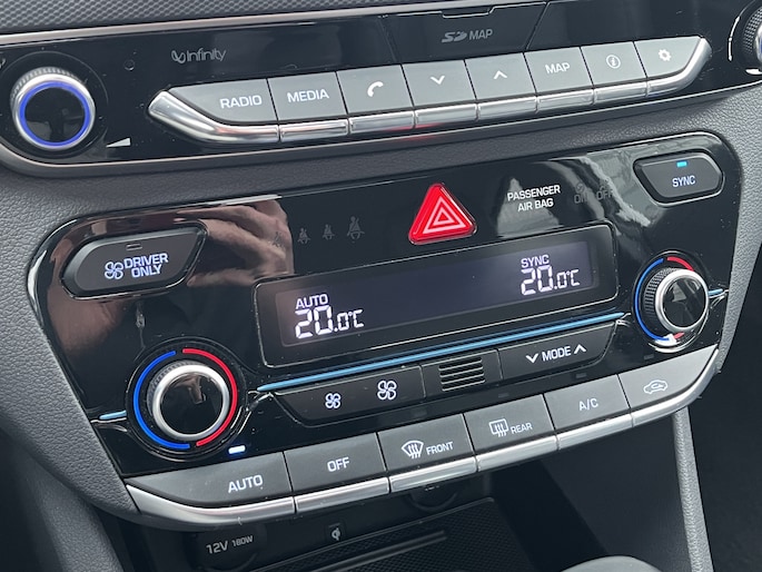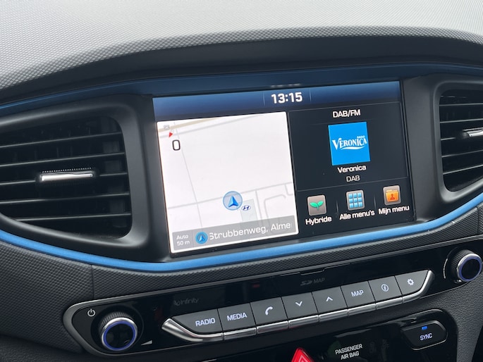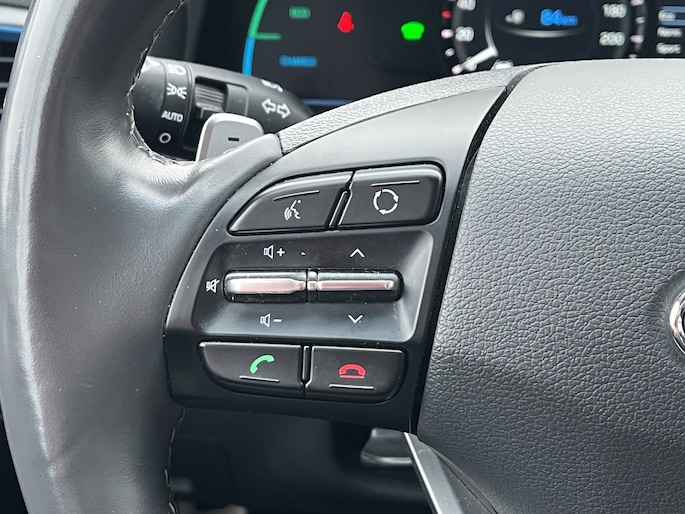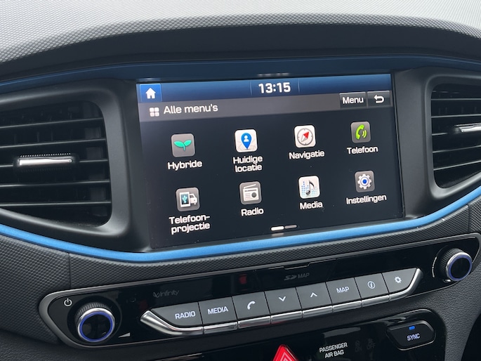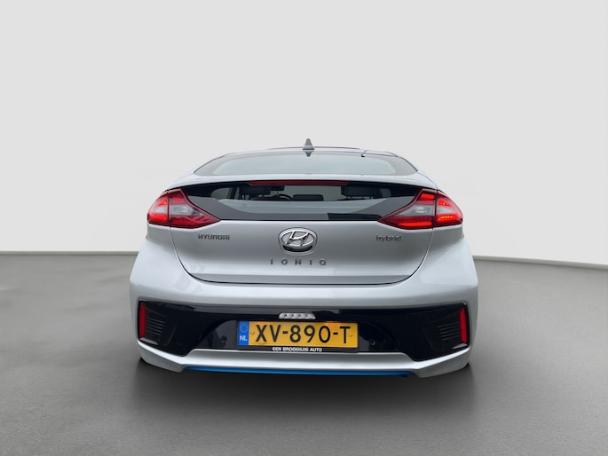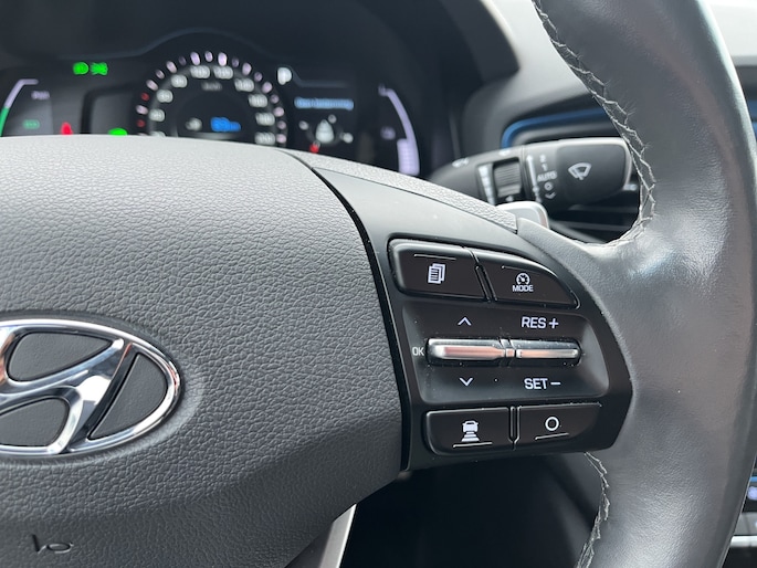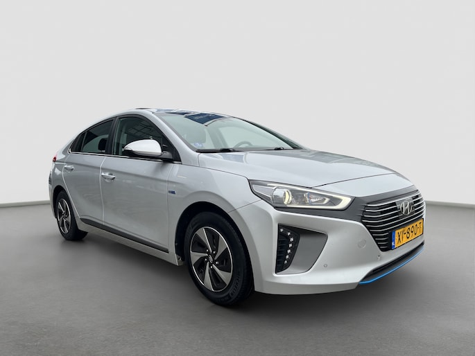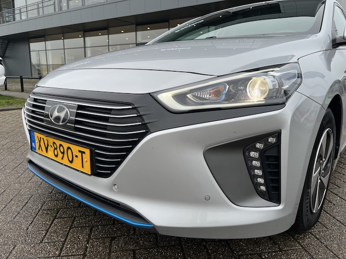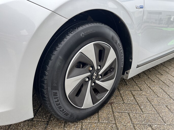 Laat u niets wijsmaken, deze Hyundai IONIQ biedt alles wat u van een auto verlangt. Deze Hyundai IONIQ is voorzien van een hybride motor. Dat betekent dat de aandrijving wordt geleverd door zowel een brandstofmotor als een elektromotor, die slim samenwerken om zuinig over de weg te gaan. Rijcomfort wordt naar een hoger niveau getild in deze auto, met inbegrip van stoelverwarming, een verwarmbare achterbank en een verwarmbaar stuur. Een heerlijk zonnetje, of indrukwekkende wolkenpartijen? Bekijk ze onbelemmerd door het elektrisch bediende glazen panoramadak. Met de krachtige xenonverlichting rijdt u ontspannen in het donker. Bij de uitrusting van deze auto horen onder meer 15 inch lichtmetalen velgen, in delen neerklapbare achterbank, LED-achterlichten en verstelbare lendensteunen. Omdat u nou eenmaal geen ogen in uw achterhoofd heeft, is het altijd lastig om achteruit te rijden zonder brokken te maken. De achteruitrijcamera lost dat probleem op. Als u de adaptive cruise control inschakelt, regelt de auto zelf de snelheid en de afstand tot de auto voor u. Met de knoppen op het stuur regelt u het audio-installatiesysteem en het full map navigatiesysteem, terwijl u uw blik op de weg gericht houdt. De audio-installatie biedt daarbij glasheldere ontvangst dankzij DAB-ontvangst. Geen onnodige spaghetti van oplaadsnoertjes voor de smartphone: deze Hyundai IONIQ heeft een draadloze oplaadmogelijkheid voor telefoons. Bij het wisselen van rijbaan kan een dode hoek ontstaan waardoor achterliggers te dichtbij kunnen komen. De achteropkomend verkeer waarschuwing geeft in dat geval automatisch een signaal. Met automatische airconditioning, regensensor, keyless entry, automatisch dimmende binnenspiegel en boordcomputer is deze Hyundai helemaal compleet. De nieuwste veiligheidssystemen komen in deze Hyundai IONIQ samen. Het Lane-keeping systeem registreert permanent of u binnen de lijnen van de rijstrook blijft; dwaalt u onbedoeld af, dan waarschuwt het systeem en corrigeert de koers. De forward collision warning reduceert het gevaar van een botsing met een voorligger significant. De auto is ook uitgerust met dodehoekdetectie, hill hold functie, autonoom remsysteem en bandenspanningcontrolesysteem. Even bellen voor een afspraak en u kunt deze auto van top tot teen zelf bekijken.