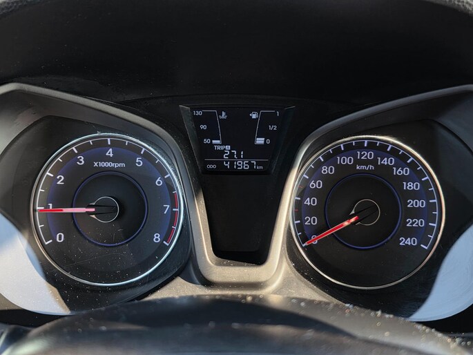 Een optie die de veiligheid verhoogt, is de bediening vanaf het stuur van het audiosysteem en het navigatiesysteem. Liever gepiep dan gekraak? Dan zult u blij zijn met de aanwezige parkeersensoren! Deze auto heeft airconditioning aan boord. Ook is de Hyundai uitgerust met: lederen stuur, centrale deurvergrendeling met afstandsbediening en boordcomputer.