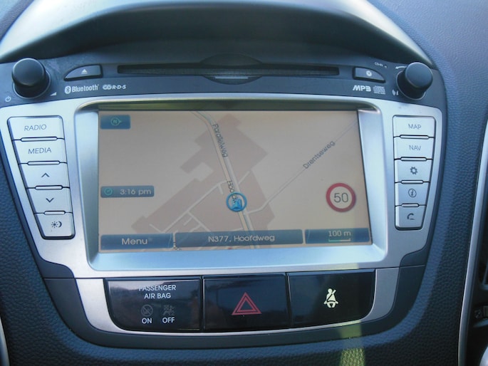 Ongelukken of parkeerschade? Dat gebeurt u niet meer, met de achteruitrijcamera. Altijd een deskundige gids aan boord, dankzij het full map navigatiesysteem. U verwacht natuurlijk electronic climate control in deze auto, en die is er dan ook. Volumeknoppen, zenderschakelen, muten... U doet alles met de audiobediening op het stuur. Veilig en gemakkelijk. Het hoort bij een intelligente auto als deze dat hij zelf in staat is om zijn omgeving in de gaten te houden. Dat doet deze Hyundai met een automatisch inschakelbare verlichting en een regensensor. De Hyundai is standaard voorzien van: cruise control, automatisch dimmende binnenspiegel, lederen stuur, centrale deurvergrendeling met afstandsbediening, bagage afdekhoes en boordcomputer.