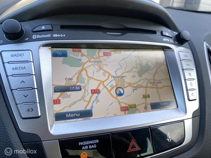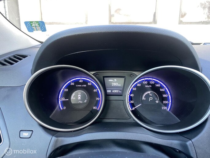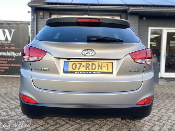 Laat u niets wijsmaken, deze Hyundai ix35 biedt alles wat u van een auto verlangt. De aandrijving van deze Hyundai komt voor rekening van een viercilinder benzinemotor en een automatische transmissie. Houdt u van frisse lucht en van licht dan zit u helemaal goed met het elektrisch bediende panoramadak. Natuurlijk behoren 17 inch lichtmetalen velgen, halflederen bekleding, donker getint glas achter en in delen neerklapbare achterbank ook tot de uitrusting van deze complete auto.