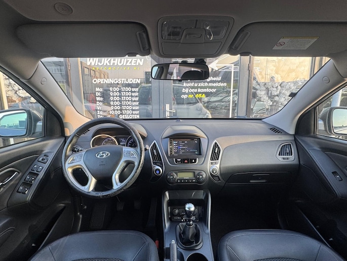 Bij het ontwerpen van de Hyundai ix35 stonden uw comfort en uw veiligheid centraal. Deze ix35 is van het bouwjaar 2014. De aandrijving van deze SUV komt voor rekening van een viercilinder benzinemotor en een handgeschakelde zesversnellingsbak. Ook 17 inch lichtmetalen velgen, halflederen bekleding, donker getint glas achter, in delen neerklapbare achterbank en verstelbare lendensteunen zijn aan boord.