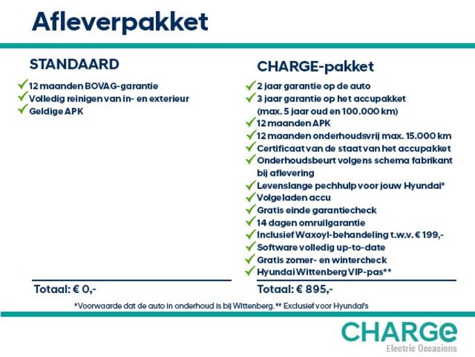 • CHARGE-afleverpakket (€ 895 meerprijs):