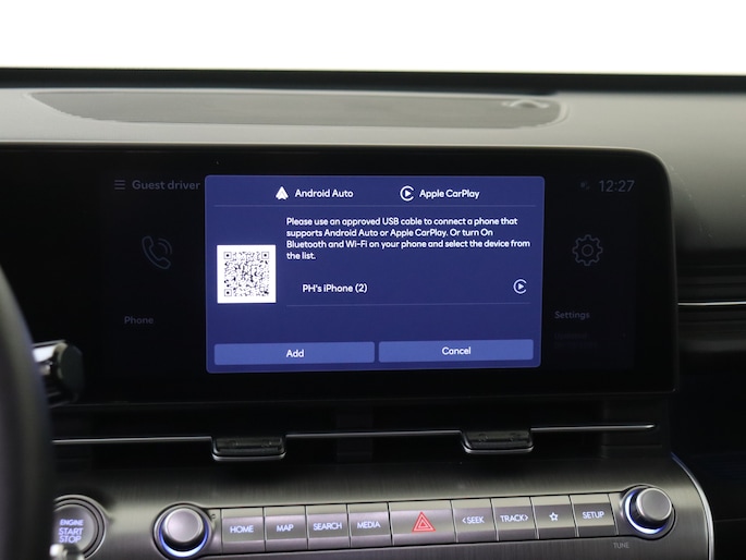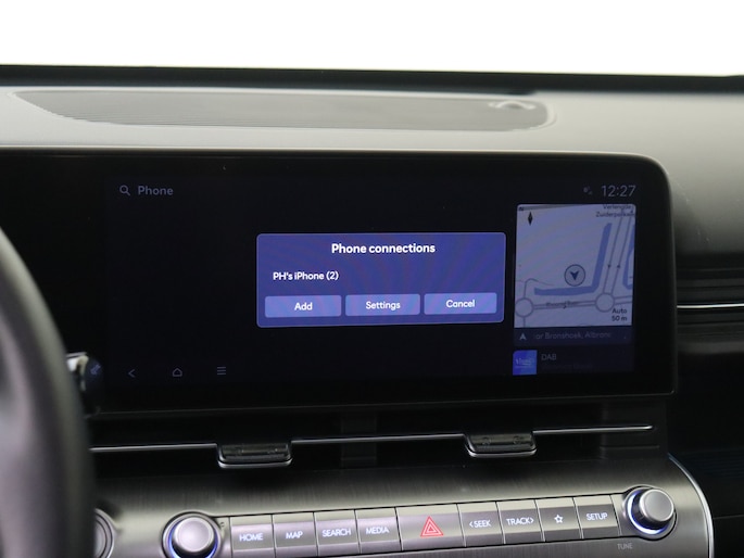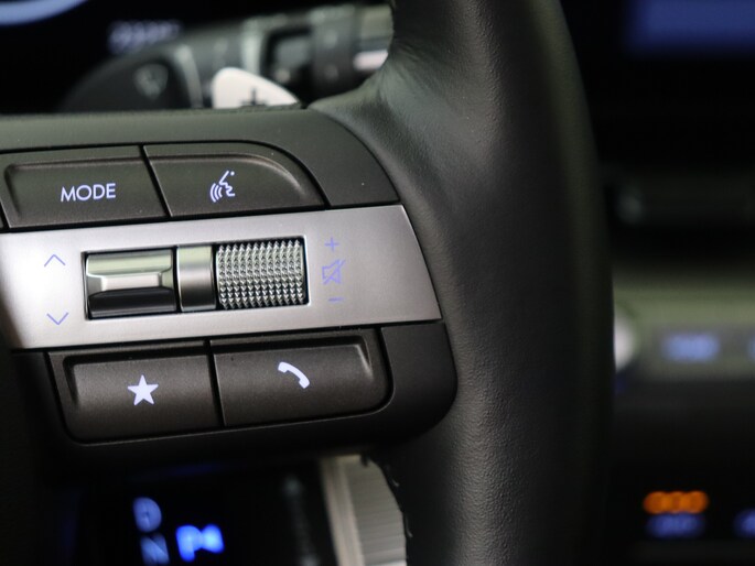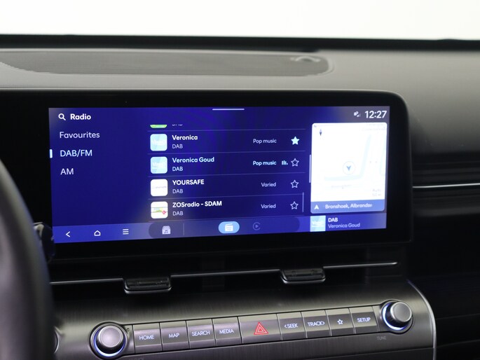 Het digitale dashboard is een perfecte bijrijder. Alles benodigde informatie is permanent zichtbaar of opvraagbaar. Met de achteruitrijcamera zie jij precies wat er achter de auto gebeurt. Adaptive cruise control houdt de ingestelde snelheid vast en houdt automatisch afstand tot jouw voorligger. Connected Services voegt nog meer comfort en veiligheid toe aan deze auto. Je kunt het audiosysteem met DAB-ontvangst en het navigatiesysteem bedienen met de knoppen op het stuur of zelf met je stem. Deze Hyundai is voorzien van automatische airconditioning, schakelpaddles aan het stuur, regensensor, keyless entry, automatisch dimmende binnenspiegel en bagage afdekhoes.
