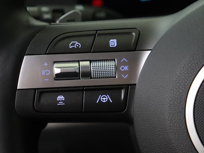 Geavanceerde veiligheidssystemen kijken tijdens elke rit met je mee en schatten continu de risico's in. In het instrumentarium zie je tijdens de rit ook de belangrijkste verkeersborden aangegeven, die de auto automatisch voor je leest. Ongemerkt buiten de rijstrook raken? Nee hoor, het Lane-keeping systeem waarschuwt en corrigeert. Veilig inhalen wordt bevorderd door de actieve dodehoekdetectie. In deze Hyundai vinden we verder een hill hold functie, vermoeidheidsherkenning, autonoom remsysteem en bandenspanningcontrolesysteem.