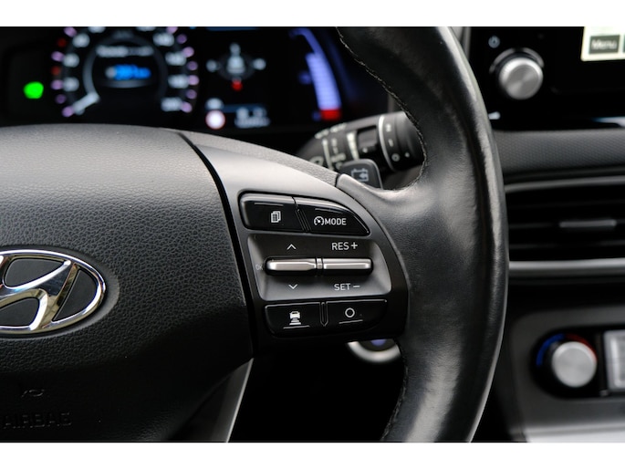 Geen nekkramp of spiegelwerk meer bij het achteruitrijden: de achteruitrijcamera kijkt en ziet alles! Met adaptive cruise control houdt deze auto automatisch afstand tot uw voorligger. De hoorbare sensatie van het high performance audiosysteem is een ervaring op zich. Deze Hyundai Kona is een complete auto anno nu, en dat merk je. Bijvoorbeeld door de aanwezige draadloze oplaadmogelijkheid voor telefoons. Bij de luxe van deze auto hoort ook automatische airconditioning. En dan is deze auto ook nog eens voorzien van navigatiesysteem, DAB ontvangst, regensensor, keyless entry en automatisch dimmende binnenspiegel.