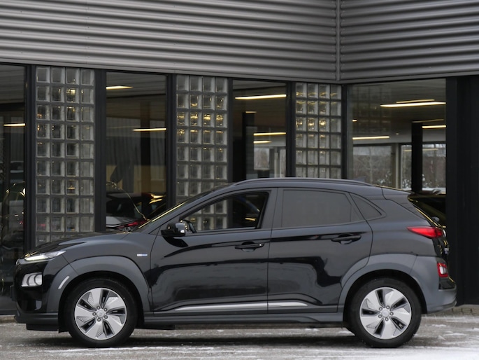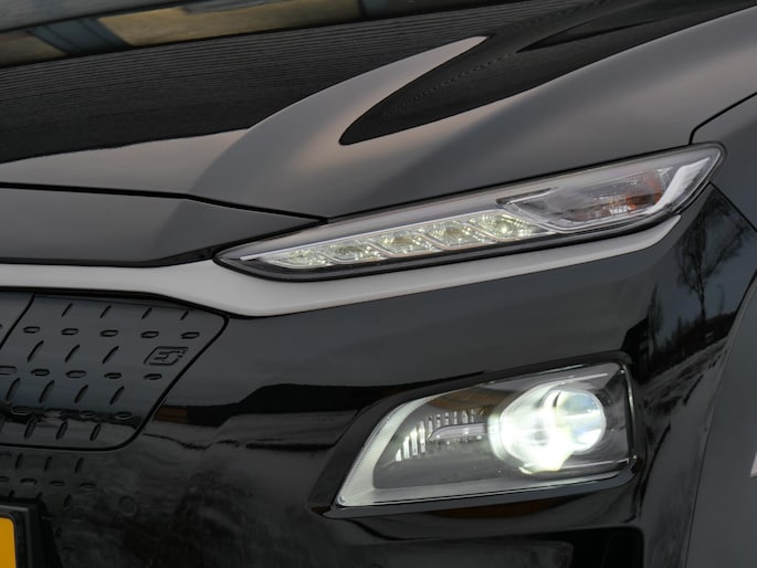 Deze Kona EV heeft een 64kWh batterij waardoor de range groter is, de auto meer vermogen heeft en ook nog eens sneller opgeladen wordt.
