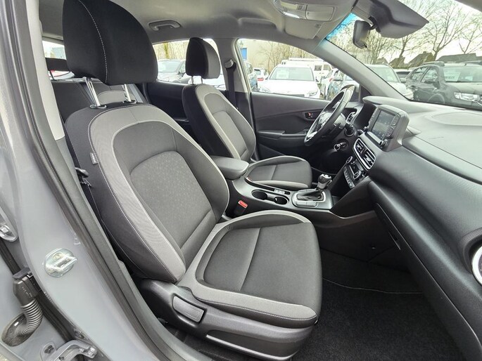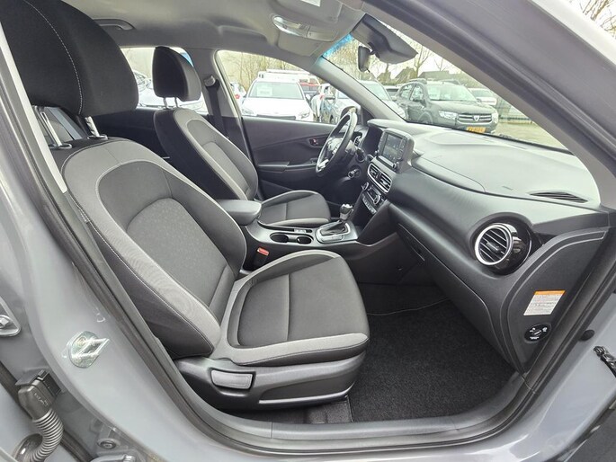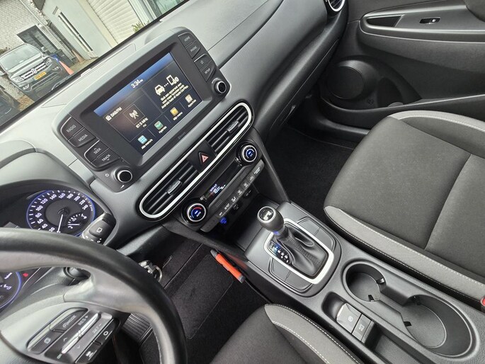 In bijna nieuwstaat verkerende Hyundai Kona AUTOMAAT in de rijk uitgeruste Comfort uitvoering met o,a: Climate controle, Adaptive Cruise controle, Elektrisch pakket, Full map Navigatiesysteem via koppeling telefoon, Achteruitrijcamera, Bluetooth telefoon voorbereiding, Spraakherkenning, 16 inch Lm velgen origineel Hyundai, Multimedia, Isofix, Lichtsensor, DAB+ radio Usb aansluiting, Apple carplay, Android auto, Lane assist, Vol Automaat met F1 flippers aan het stuur, Middenarmsteun, Trekhaak, enz enz.