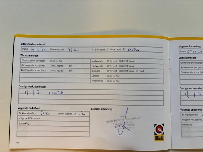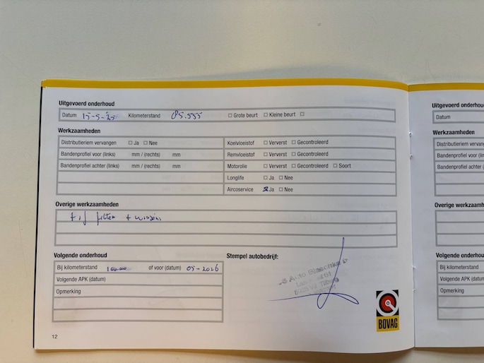 Onderhoudsboekjes: Aanwezig