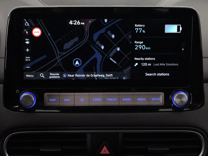 In de Hyundai Kona heeft uw veiligheid en die van uw omgeving prioriteit. Wat deze auto ook kan, is lezen. Hij 'leest' voor u de verkeersborden tijdens de rit en attendeert u erop door ze op het dashboard te projecteren. Een camera houdt de juiste koers binnen de rijstrook in de gaten en het Lane-keeping systeem corrigeert bij afwijkingen. Het forward collision warning-systeem is constant alert en detecteert via sensor de afstand tot voorliggers. Wordt die te klein, dan volgt een automatische waarschuwing. U bent mede dankzij head-up display, hill hold functie, vermoeidheidsherkenning, autonoom remsysteem en bandenspanningcontrolesysteem steeds veilig onderweg.