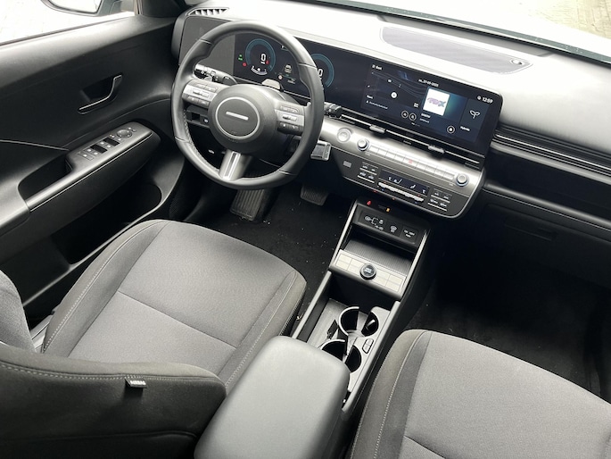 In de automarkt wereldwijd is Hyundai relatief een jong merk. En dat blijkt wel uit de hoge kwaliteit en de meer dan scherpe prijzen. 'New Thinking. New Possibilities', zeggen ze zelf. De pluspunten van rijden op benzine en rijden op elektriciteit zijn soms lastig te vergelijken. Dus komt de hybride motor van deze Hyundai Kona mooi uit. De perfecte combi! In deze auto profiteert u onder andere ook van: 16 inch lichtmetalen velgen, LED koplampen, geluidsisolerende ramen, in hoogte verstelbare passagiersstoel, in delen neerklapbare achterbank en LED-achterlichten.