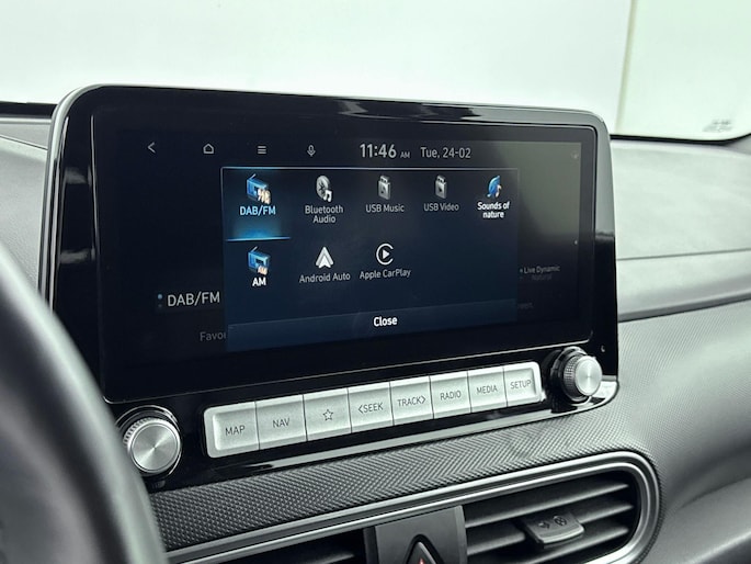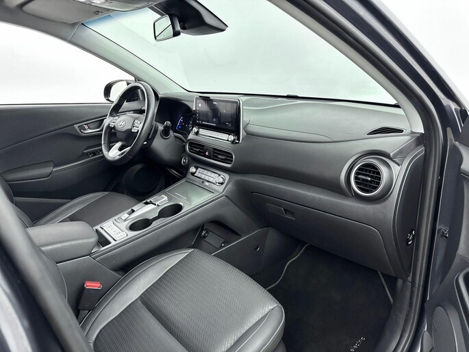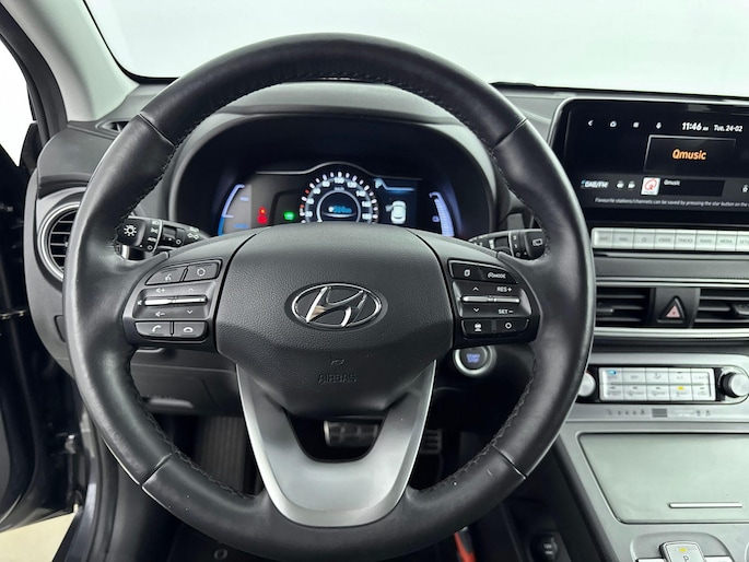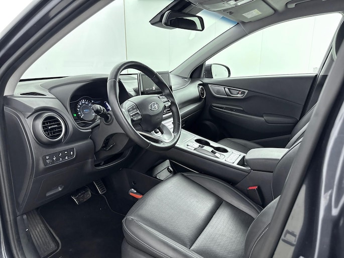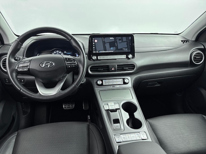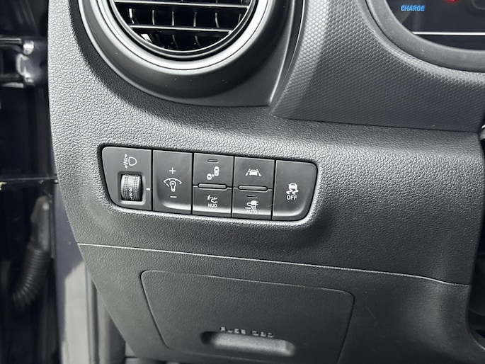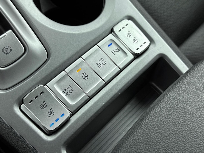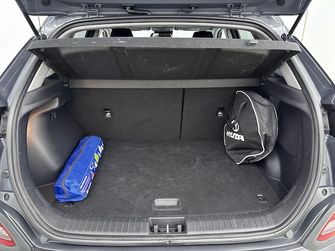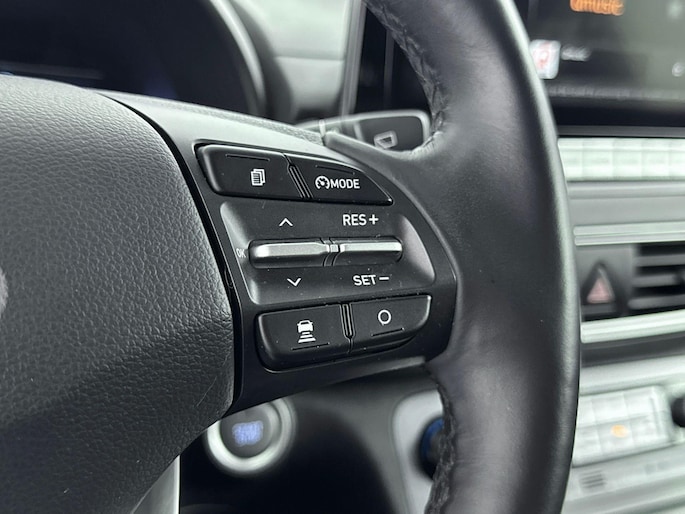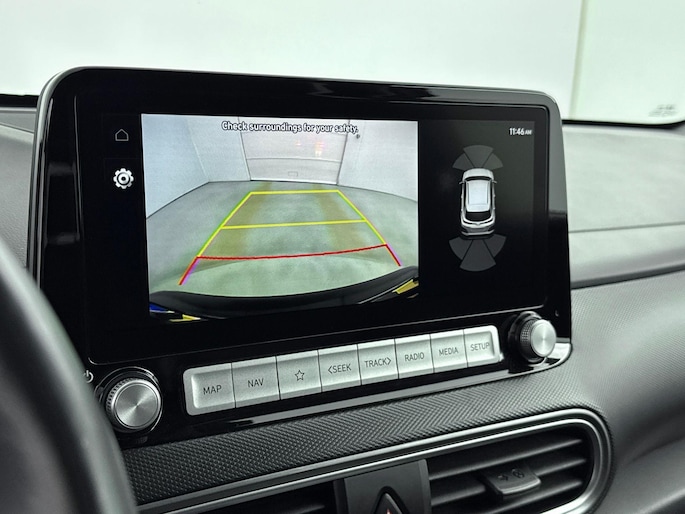 Zoals je mag verwachten van deze Hyundai Kona is hij uitgerust met een reeks aan actieve veiligheidssystemen. In het instrumentarium laat de verkeersborddetectie de actuele verkeersborden zien. Een camera houdt de juiste koers binnen de rijstrook in de gaten en het Lane-keeping systeem corrigeert bij afwijkingen. De forward collision warning reduceert het gevaar van een botsing met een voorligger significant. Met voorzieningen als head-up display, dodehoekdetectie, hill hold functie, vermoeidheidsherkenning, autonoom remsysteem en bandenspanningcontrolesysteem, ben je altijd veilig onderweg.