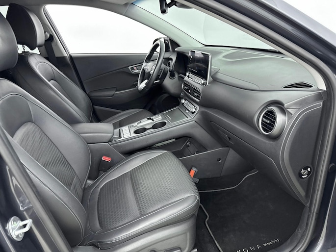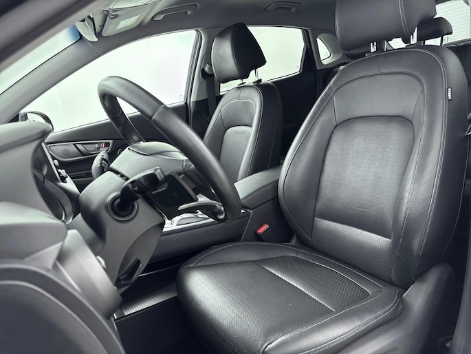 Hyundai heeft de auto opnieuw uitgevonden. De volledig elektrische Hyundai Kona is duurzaam, maar biedt tegelijk veel rijcomfort en geweldige prestaties. Dit exemplaar is van het bouwjaar 2020, er staat 76806 kilometer op de teller. Eindelijk elektrisch rijden? Deze auto is voorzien van een elektromotor. Dus stil, schoon én snel! Topklasse: daar hoort leren bekleding absoluut bij. Doe maar luxe! Neem plaats in de verwarmbare voorstoelen en voel de weldaad in koude dagen. Als je de stuurverwarming inschakelt, geniet jij van weldadige warmte voor jouw handen en vingers. Verder is de Hyundai uitgerust met: 17 inch lichtmetalen velgen, LED koplampen, extra getint glas, in delen neerklapbare achterbank, LED-achterlichten en verstelbare lendensteunen.