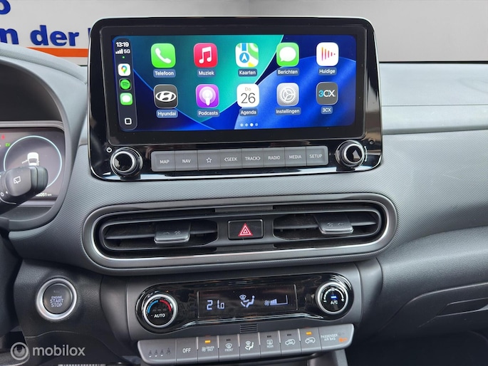 Zoekt u een auto met kwaliteit op hoog niveau, maar dan betaalbaar? Dan moet het wel een Hyundai worden. New Thinking. New Possibilities. Deze Hyundai Kona is voorzien van een hybride motor. Dat betekent dat de aandrijving wordt geleverd door zowel een brandstofmotor als een elektromotor, die slim samenwerken om zuinig over de weg te gaan. De verwarmbare voorstoelen zijn een weldaad voor rug en schouders. Natuurlijk behoren 18 inch lichtmetalen velgen, LED koplampen, warmtewerend glas, dakspoiler, in delen neerklapbare achterbank en LED-achterlichten ook tot de uitrusting van deze complete auto.