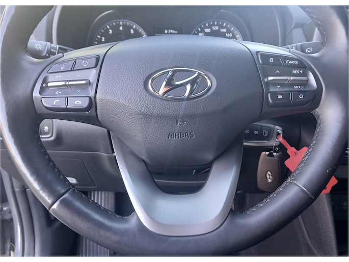 Zoals u mag verwachten van deze Hyundai Kona is hij uitgerust met een reeks aan actieve veiligheidssystemen. Het Lane-keeping systeem let constant op en waarschuwt of corrigeert als u onoplettend over de lijnen van de rijstrook gaat. Bij concentratieverlies en toenemende vermoeidheid van de bestuurder, geeft de auto een sterk signaal om u weer bij de les te houden. Hierdoor kunnen veel ongelukken voorkomen worden. In deze Hyundai vinden we verder een hill hold functie en bandenspanningcontrolesysteem.