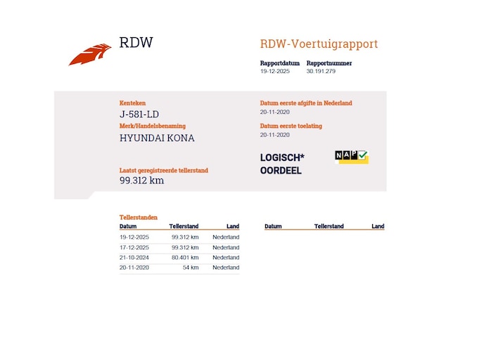Kilometerstand gecontroleerd
