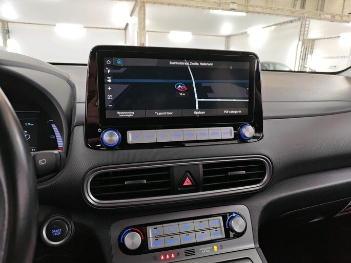 Zoals u mag verwachten van deze Hyundai Kona is hij uitgerust met een reeks aan actieve veiligheidssystemen. Deze Hyundai Kona is ook behulpzaam als het gaat om een rechte koers. Het Lane-keeping systeem signaleert en corrigeert als u onbedoeld de rijstrooklijnen dreigt te overschrijden. Het forward collision warning-systeem is constant alert en detecteert via sensor de afstand tot voorliggers. Wordt die te klein, dan volgt een automatische waarschuwing. Deze auto waarschuwt de bestuurder als die tekenen van vermoeidheid vertoont en kan zo ernstige ongelukken voorkomen. De veiligheid van deze auto wordt verder verhoogd door hill hold functie, autonoom remsysteem en bandenspanningcontrolesysteem.