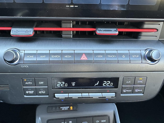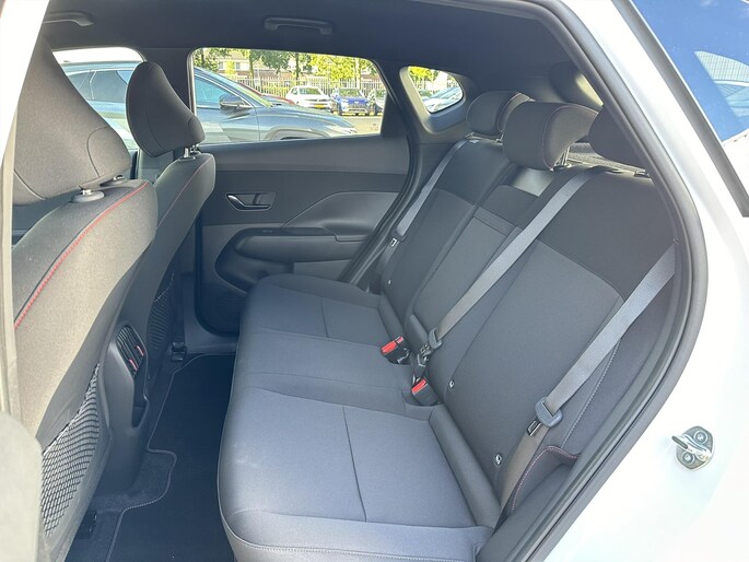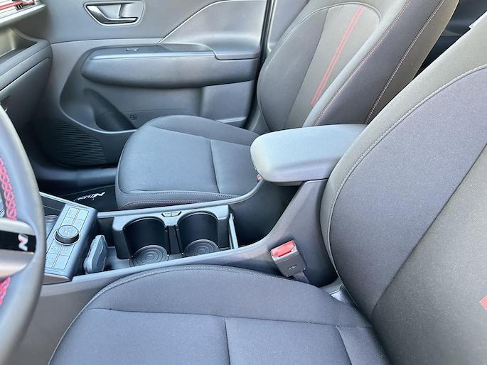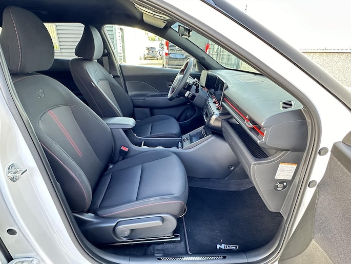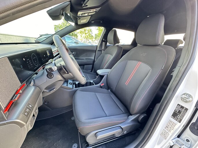Binnen in de KONA Electric N Line Edition ligt de focus op het bieden van een boeiende rijervaring, zónder concessies te doen aan comfort en functionaliteit. Comfortabele sportstoelen met N Line-logo en rode contraststiksels dragen bij aan de sportieve look & feel van de KONA Electric N Line Edition. Opvallend maar subtiel zijn de rode accenten op het stuurwiel en het dashboard. Ten opzichte van de Comfort-uitvoering is de N Line Edition verder extra uitgerust met: