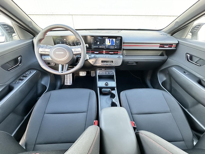 De KONA Electric N Line Edition heeft een rijbereik tot maar liefst 514 km (volgens WLTP) en daarmee mag hij zich de e-SUV met de grootste actieradius in zijn klasse noemen. In de cockpit kijkt de bestuurder uit op een hypermodern dashboard met twee geïntegreerde panoramische beeldschermen: een 12,3-inch infotainmenttouchscreen en een 12,3-inch digitaal cluster. Alle bedieningselementen, waaronder de elektrische shift-by-wire-transmissiehendel, zijn ergonomisch rondom het stuur geplaatst.