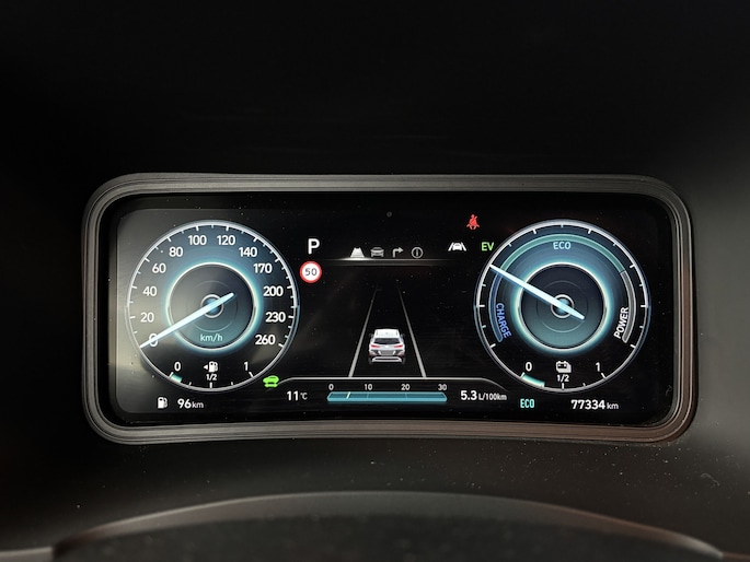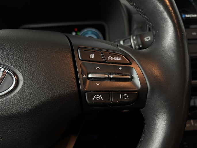 Zoals je mag verwachten van deze Hyundai Kona is hij uitgerust met een reeks aan actieve veiligheidssystemen. Het Lane-keeping systeem zorgt voor een automatisch constante positie binnen de rijstrook. Afdwalen is uitgesloten. Forward collision warning is een automatisch waarschuwingssysteem dat direct in werking treedt bij gevaar voor een kop-staartbotsing. Met de vermoeidheidsassistent ben je ook op lange ritten veilig op pad. Het systeem geeft een waarschuwing zodra het tijd is voor een pauze. In deze Hyundai vinden we verder een head-up display, dodehoekdetectie, hill hold functie, autonoom remsysteem en bandenspanningcontrolesysteem.