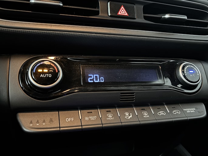 Bij het inparkeren laat de achteruitrijcamera precies zien hoeveel meter... decimeter... centimeter ruimte er nog is! Kilometerstand? Oliepeil? Accuspanning? Allemaal te zien via de app. Overal. Altijd. Dankzij Connected Services. De sensatie van superieur geluid wordt geleverd door het high performance audiosysteem. Automatische airconditioning verwarmt of koelt het interieur met een druk op de knop. Achter het stuur van deze Hyundai ben jij niet alleen. De auto kijkt als het ware met je mee tijdens de rit. De regensensor schakelt de ruitenwissers in als het nodig is en de automatisch inschakelbare verlichting doet de lichten voor je aan. En deze auto heeft ook dashboard met spraakbediening, full map navigatiesysteem, schakelpaddles aan het stuur, DAB ontvangst, cruise control en keyless entry als standaard uitrusting.