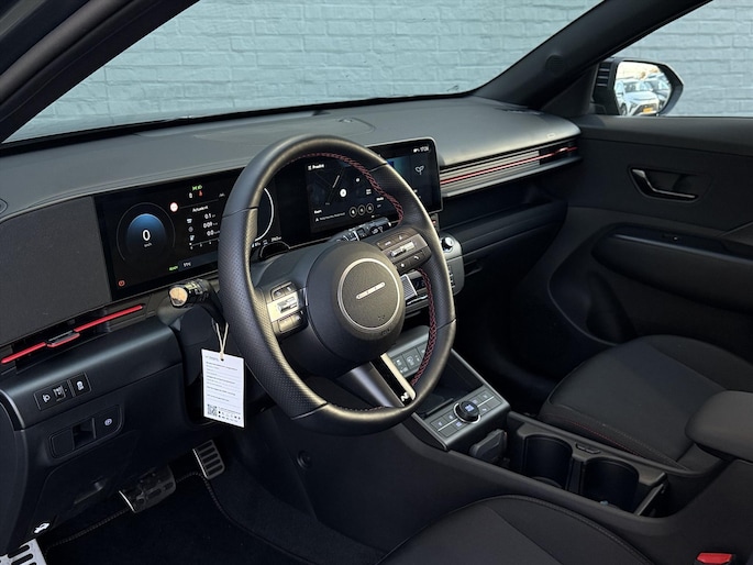 Strak, sportief en opvallend. De KONA Electric N Line Business onderscheidt zich met een agressiever front, bredere luchtinlaten en exclusieve N Line-details zoals de donkerchromen grille en rode contrast accenten in het interieur. Samen met de 19-inch lichtmetalen velgen straalt hij kracht en dynamiek uit zonder in te leveren op professionaliteit