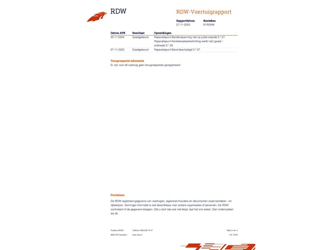 Kilometerstand gecontroleerd