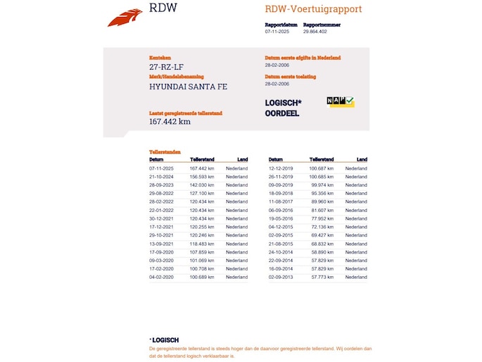 Kilometerstand gecontroleerd