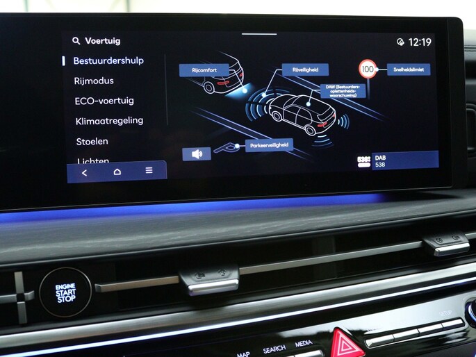 Het interieur van deze Hyundai is ook voorzien van een aantal handige opties. Zo zijn de bestuurdersstoel en passagiersstoel elektrisch verstelbaar, zodat je altijd de perfecte zitpositie kunt vinden. Daarnaast zorgen de verwarmde voorstoelen en de verwarmde achterbank ervoor dat jij en je passagiers het hele jaar door comfortabel en behaaglijk zitten, zelfs op de koudste dagen. Het geluidsisolerend glas zorgt ervoor dat het interieur van de auto lekker stil blijft, zodat je ongestoord van je favoriete muziek of podcasts kunt genieten.