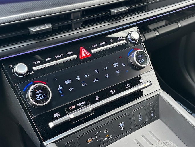 De nieuwe SANTA FE biedt plaats aan maximaal zeven personen. De topuitvoering Black Line is er ook als zeer luxe zeszitter met captain’s chairs op de tweede zitrij. Dat zijn elektrisch verstelbare, onafhankelijke stoelen met armleuningen die enorm veel comfort bieden. Het interieur is verder strak en opgeruimd, met achter het stuur een 12,3-inch instrumentarium dat naadloos overloopt in een even groot infotainmentscherm.