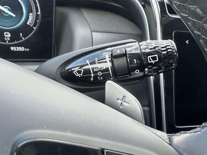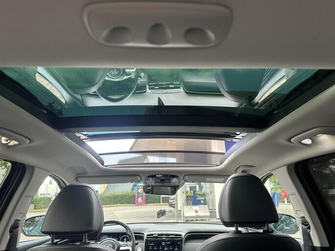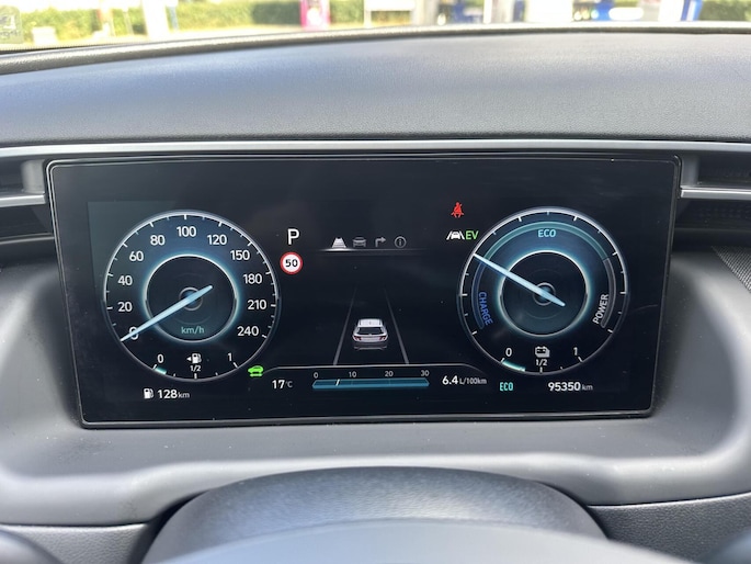 Ontspannen en zorgeloos autorijden, dat doet u met deze Hyundai Tucson. Hybride auto's zoals deze staan er om bekend dat ze zuinig zijn met brandstof. Van de diverse pluspunten is ook het lederen interieur het noemen waard. Koude start? Niet met de verwarmbare voorstoelen! Wat een licht geeft dat glazen elektrisch bedienbare panoramadak. De bagageruimte is toegankelijk via een comfortverhogende elektrische achterklep. De verwarmde achterbank is een luxe extra, speciaal voor de passagiers. In deze auto profiteert u onder andere ook van: 19 inch lichtmetalen velgen, LED koplampen, donker getint glas achter, in delen neerklapbare achterbank, LED-achterlichten en verstelbare lendensteunen.