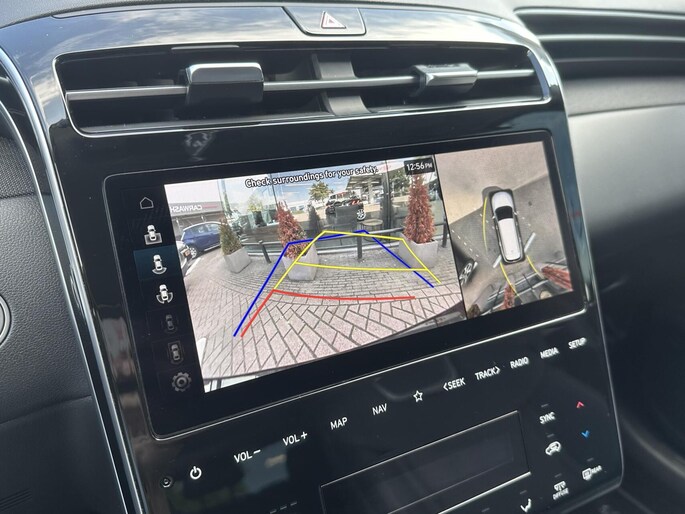 De slimme lay-out van het digitale dashboard zorgt voor een uitstekend overzicht onderweg. De functie van deze 360 graden camera is vooral nuttig in smalle straatjes waar het zicht beperkt is. Adaptive cruise control houdt de ingestelde snelheid vast en houdt afstand tot het voertuig voor u. Kop aan kont langzaam rijden: dan is afstand houden soms lastig. De file assistent helpt en zorgt automatisch voor veilige ruimte tot de voorligger. Ook als die tot stilstand komt. De auto is voorzien van een trekhaak en is een uitstekende caravantrekker. De uitrusting van deze Hyundai is met dashboard met spraakbediening, connected drive services, premium audiosysteem, full map navigatiesysteem, kruisend verkeer detectie en automatische airconditioning behoorlijk compleet.