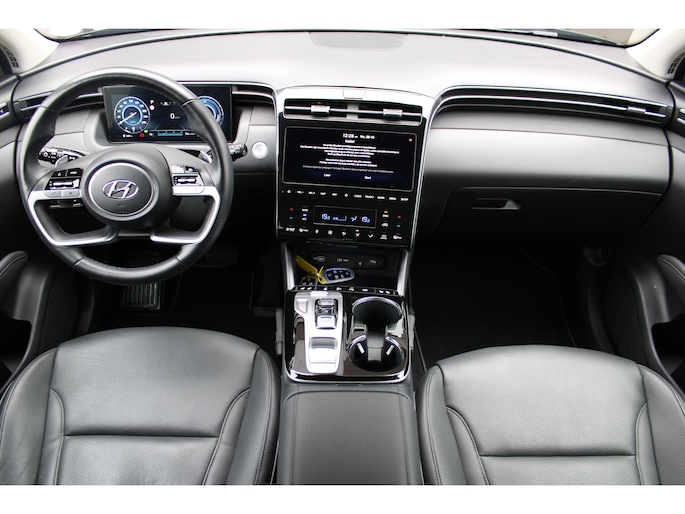 Jong, maar niet onervaren. De meterstand laat zien dat deze Hyundai Tucson al een stukje heeft gereden. Voor de rest is-ie nog zo nieuw als in de folder. Behalve de prijs, want die scheelt behoorlijk. Minder vaak tanken? Dat gaat lukken, dankzij de hybride motor die zowel op brandstof als elektriciteit werkt. Een mooie combi, die merkbaar is in de portemonnee. Zit u goed? De stoelen zijn eenvoudig instelbaar dankzij de elektrische bediening met geheugen. Alles aan deze auto is ontworpen voor comfort, tot aan de stoelverwarming, verwarmbare achterbank, en verwarmbaar stuur. De bagageruimte is toegankelijk via een comfortverhogende elektrische achterklep. In deze auto profiteert u onder andere ook van: 19 inch lichtmetalen velgen, LED koplampen, donker getint glas achter, in delen neerklapbare achterbank, LED-achterlichten en verstelbare lendensteunen. Een cockpit, een informatiecentrum... Wat is de cabine eigenlijk niet? Dankzij het digitale dashboard bent u van alles op de hoogte. De vier camera's die samen de 360 graden camera vormen, bieden u de mogelijkheid om obstakels in elke richting te zien. Met adaptive cruise control houdt de auto zelfstandig afstand tot uw voorligger. Een veiligheidsverhogende optie waarmee u comfortabel onderweg bent. De file assistent verzacht het fileleed door automatisch veilig afstand te houden tot de voorligger en zo nodig zelfs te stoppen als de rij tot stilstand komt. De radio harder of zachter zetten of iemand uit uw contactenlijst bellen. Dankzij de spraakbediening doet u dit allemaal met uw stem. En dan is deze auto ook nog eens voorzien van connected drive services, premium audiosysteem, full map navigatiesysteem, kruisend verkeer detectie, automatische airconditioning en draadloos opladen. Het rijden met deze Hyundai wordt nog meer ontspannen dankzij de innovatieve technieken die onderweg over uw veiligheid waken. Onderweg fungeert de verkeersbord-detectie als het ware als uw bijrijder en attendeert u op de verkeersborden langs de weg. Het Lane-keeping systeem zorgt voor een automatisch constante positie binnen de rijstrook. Afdwalen is uitgesloten. Als een fietser of andere weggebruiker zich net buiten uw zichtveld naast de auto bevindt, slaat de actieve dodehoekdetectie meteen alarm. Met voorzieningen als forward collision warning system, hill hold functie, vermoeidheidsherkenning, autonoom remsysteem en bandenspanningcontrolesysteem, bent u altijd veilig onderweg. Natuurlijk bent u van harte welkom om deze auto in ons bedrijf te komen bekijken. Laat u ons weten wanneer u wilt komen?
