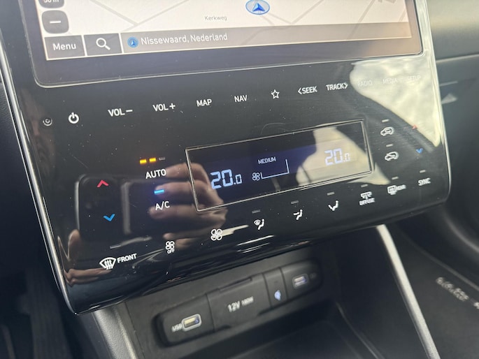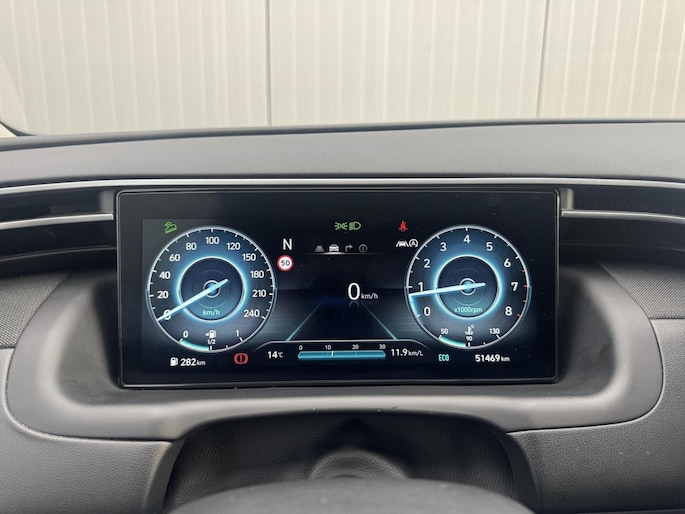 De Tucson is voorzien van een krachtige en efficiënte 1.6 T-GDI mild-hybrid motor, die soepel en zuinig rijdt. Dankzij de automatische airconditioning, stuurwielverwarming en verwarmde voorstoelen is het binnen altijd comfortabel, ongeacht het weer. De premium Krell audio installatie zorgt daarbij voor een uitstekende geluidservaring tijdens elke rit.