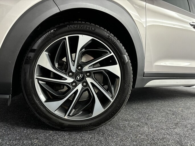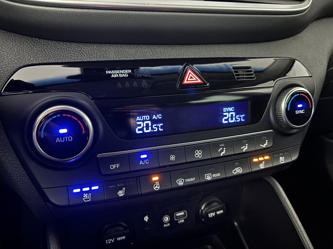 De Hyundai Tucson is ontworpen als een alleskunner waarmee je zowel in de stad als in de buitengebieden uit de voeten kunt. Met zijn benzinemotor en automatische transmissie is dit een prima auto voor nog vele kilometers. Binnenin zien we een fraai afgewerkt lederen interieur. Een weldaad voor jou en je bijrijder: deze Hyundai Tucson heeft verwarmbare voorstoelen. Met een druk op de knop gaat de elektrische achterklep open. Ook de passagiers achterin ervaren het ultieme comfort, dankzij de verwarmde achterbank. Tot de uitrusting behoren ook 19 inch lichtmetalen velgen, LED koplampen, warmtewerend glas, in delen neerklapbare achterbank, LED-achterlichten en verstelbare lendensteunen.