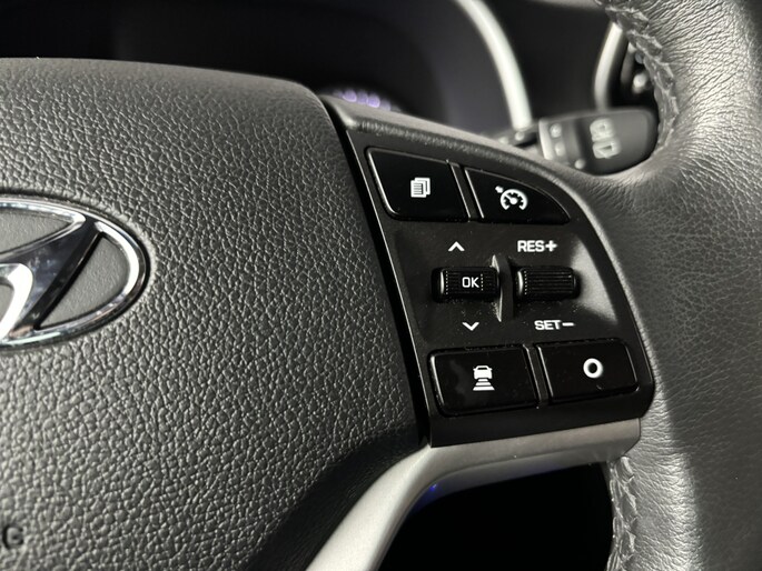 De nieuwste veiligheidssystemen komen in deze Hyundai Tucson samen. Een belangrijke bijdrage aan de veiligheid onderweg levert de verkeersbord-detectie. Indien je onbedoeld de rijstrook lijkt te verlaten, reageert het Lane-keeping systeem meteen en corrigeert. De sensor van het forward collision warning-systeem registreert permanent de afstand tot voorliggers en grijpt in als een botsing dreigt. Je bent mede dankzij dodehoekdetectie, hill hold functie, brake assist, vermoeidheidsherkenning en bandenspanningcontrolesysteem steeds veilig onderweg.