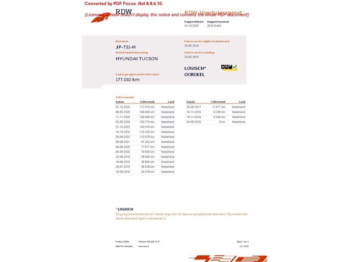 Kilometerstand gecontroleerd