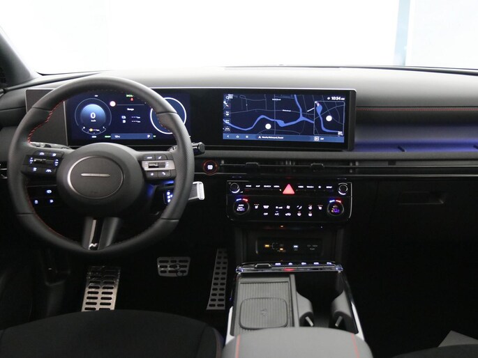 In één oogopslag heeft u alle benodigde functies onderweg in beeld, dankzij het slim ingedeelde digitale dashboard. Bij het inparkeren hoeft u het laatste stukje niet te gokken: de achteruitrijcamera kijkt voor u uit. Als u de adaptive cruise control inschakelt, regelt de auto zelf de snelheid en de afstand tot de auto voor u. Handig en veilig: Connected Services. Alle vitale functies en data van de auto checkt u via de app op uw smartphone. De sensatie van superieur geluid wordt geleverd door het high performance audiosysteem. De Hyundai is standaard voorzien van: dashboard met spraakbediening, navigatiesysteem, automatische airconditioning, draadloos opladen, DAB ontvangst en regensensor.