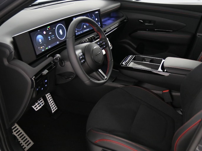 Laat u niets wijsmaken, deze Hyundai Tucson biedt alles wat u van een auto verlangt. Dit is een nieuwe auto, hij is nu direct leverbaar. Met deze hybride Hyundai Tucson ben je niet voor één gat te vangen. Je kan kiezen voor elektrisch rijden of benzine. Met de voordelen van allebei. Op koude en donkere dagen zijn de verwarmbare voorstoelen een uitkomst. Nooit meer koude handen of koude vingers in de auto. Stuurverwarming zorgt ervoor dat het stuur behaaglijk warm aanvoelt. Bij de uitrusting van deze Hyundai horen onder meer 19 inch lichtmetalen velgen, LED koplampen, geluidsisolerende ramen, trailer assistent, in delen neerklapbare achterbank en LED-achterlichten.
