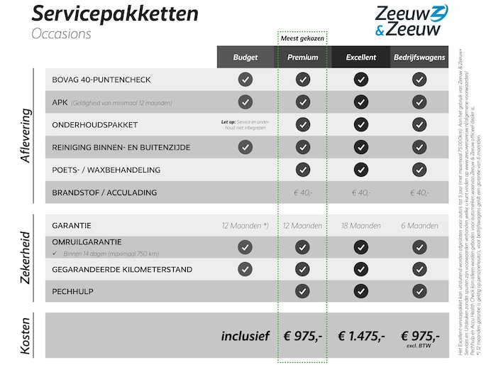Dit afleverpakket bevat: BOVAG garantie (12 maanden); BOVAG 40-Puntencheck - Servicepakket - Premium (€ 975 meerprijs):